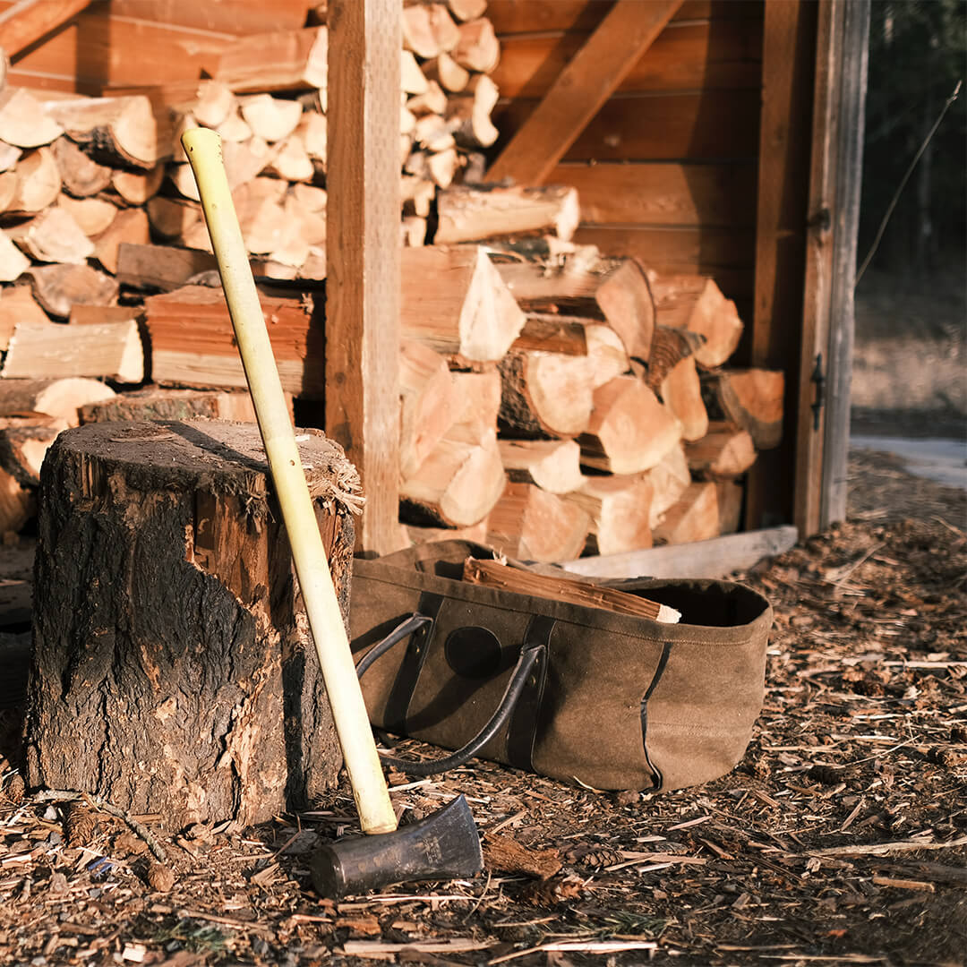 Oppbevar veden tørt utendørs, og fyr opp med tørr ved